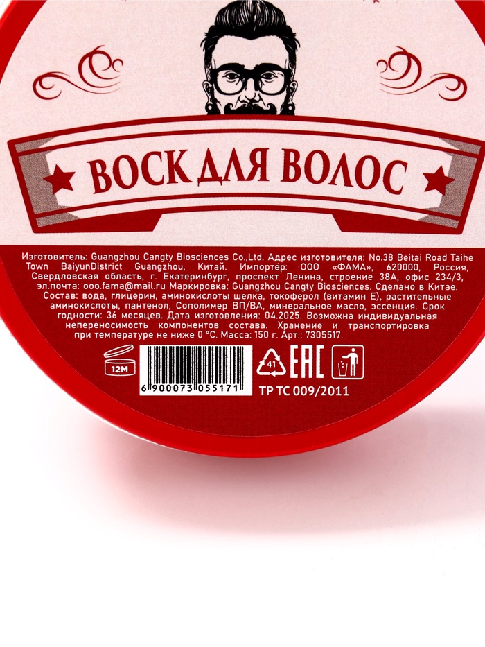 Воск для укладки волос на водной основе, бесцветный, 150 г 7 фото