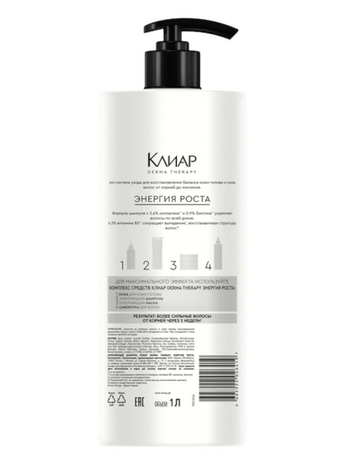 Шампунь для волос «Клиар», укрепляющий, энергия роста, 1000 мл 10 фото