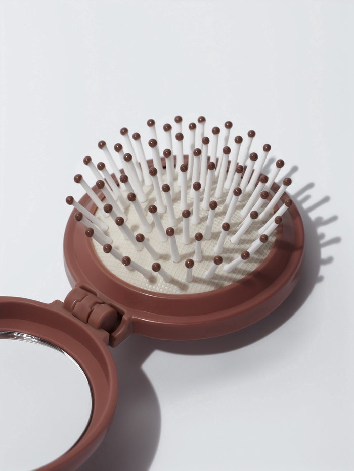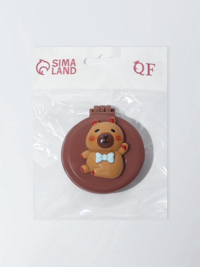 Расчёска массажная «Капибара», складная, с зеркалом, d=6.5 см, коричневая 4 фото
