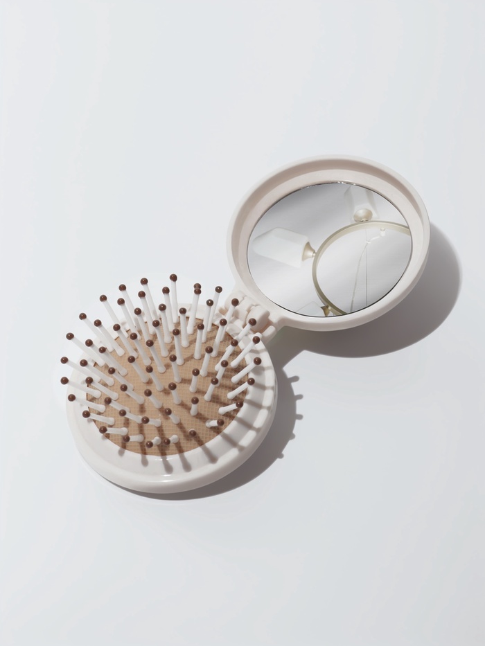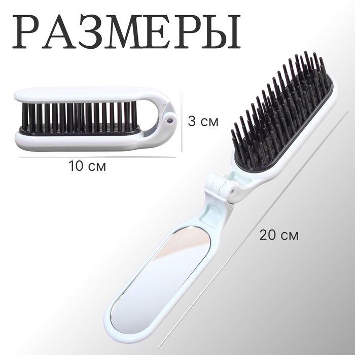 Расчёска массажная, складная, с зеркалом, 3×10 см, белая 9 фото