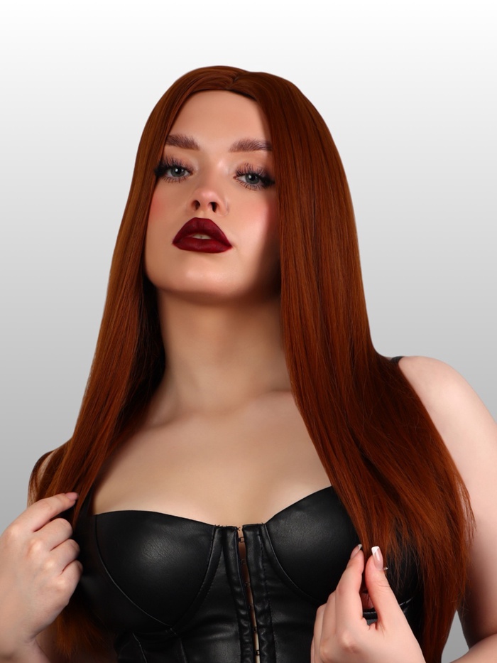 УЦЕНКА Парик искусственный, имитация кожи, 60 см, 270 г, рыжий 7 фото