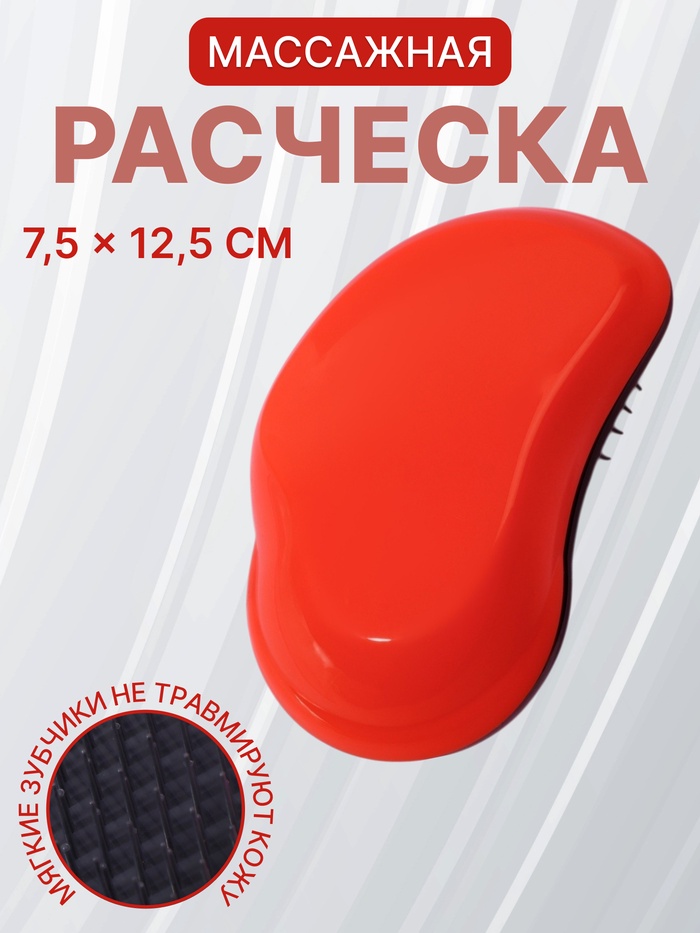 Расчёска массажная, 7.5×12.5(±1) см, оранжевая 5 фото