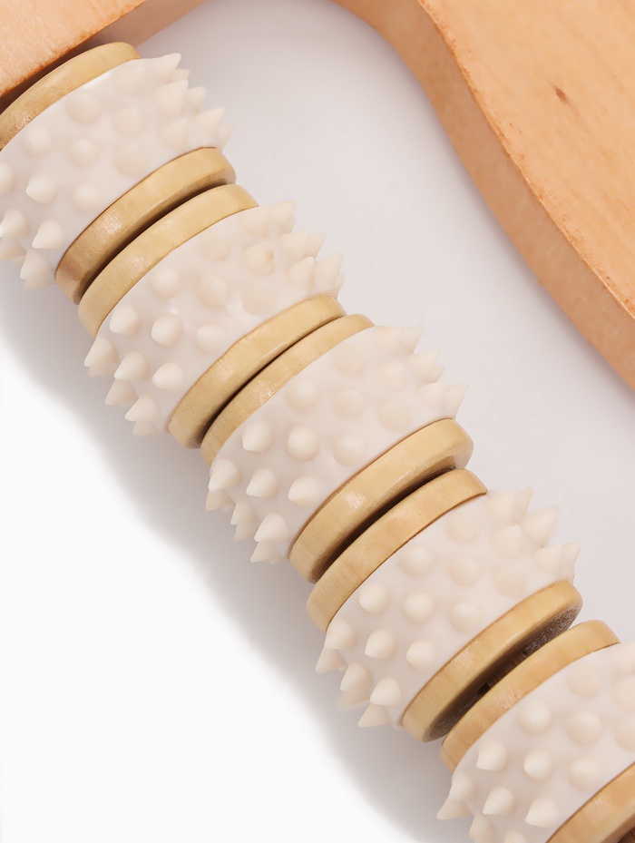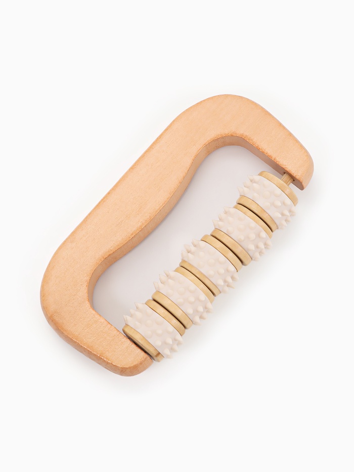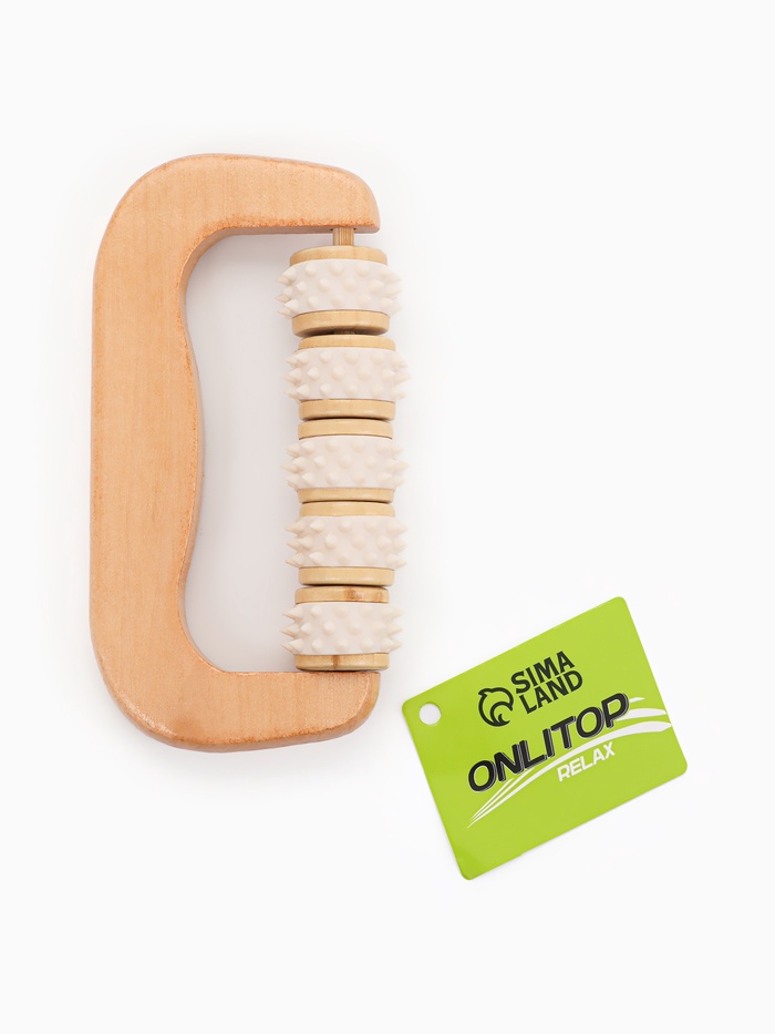 Массажёр «Коромысло», 14.5×8×3 см, деревянный, 5 колёс с шипами, бежевый 7 фото