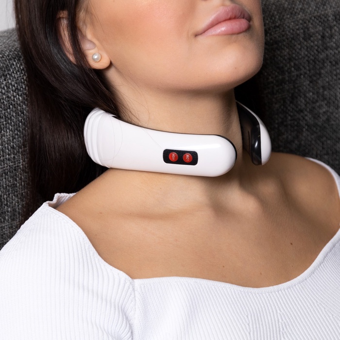 УЦЕНКА Массажёр для шеи Luazon LEM-16, от батареек 2хААА (не в комплекте), белый 10 фото