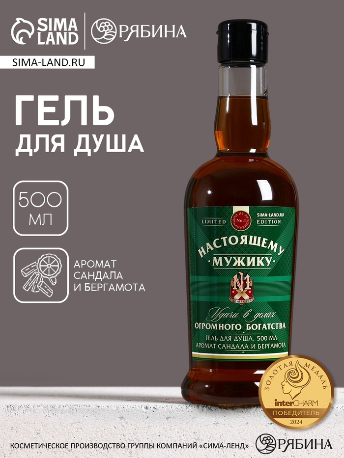 Гель для душа коньяк «Настоящему мужику», 500 мл, аромат сандала и бергамота, HARD LINE 4 фото