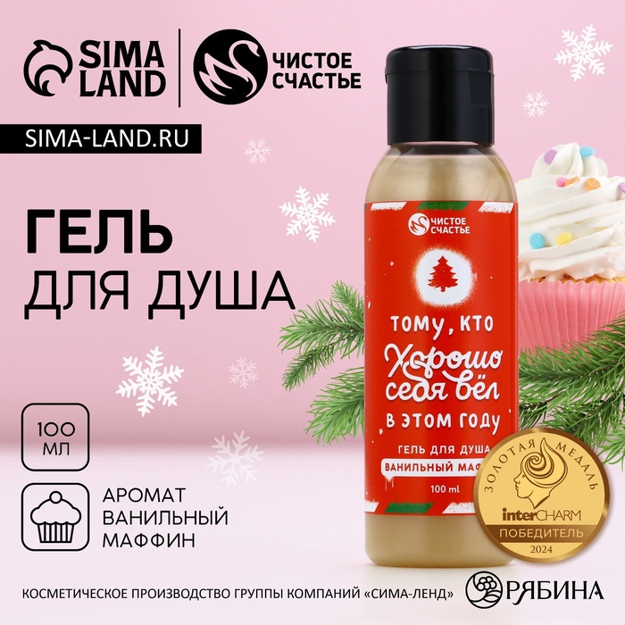 Гель для душа «Тому, кто хорошо вёл себя», 100 мл, аромат ванильного маффина, Чистое счастье 6 фото