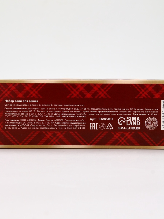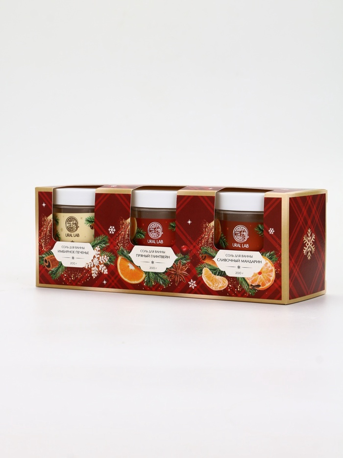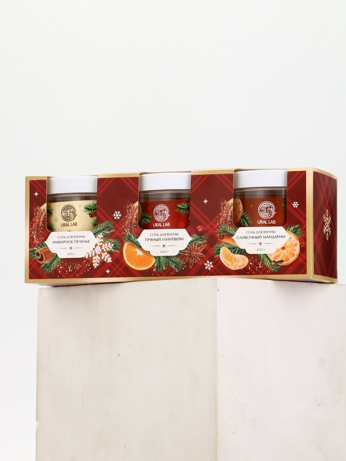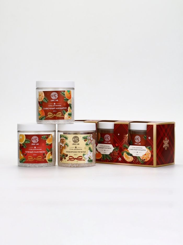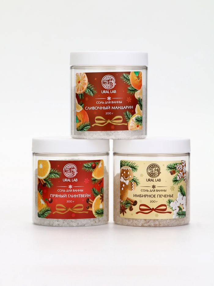 Соль для ванны, набор 3 шт. × 200 г, имбирное печенье, глинтвейн, мандарин, URAL LAB 10 фото