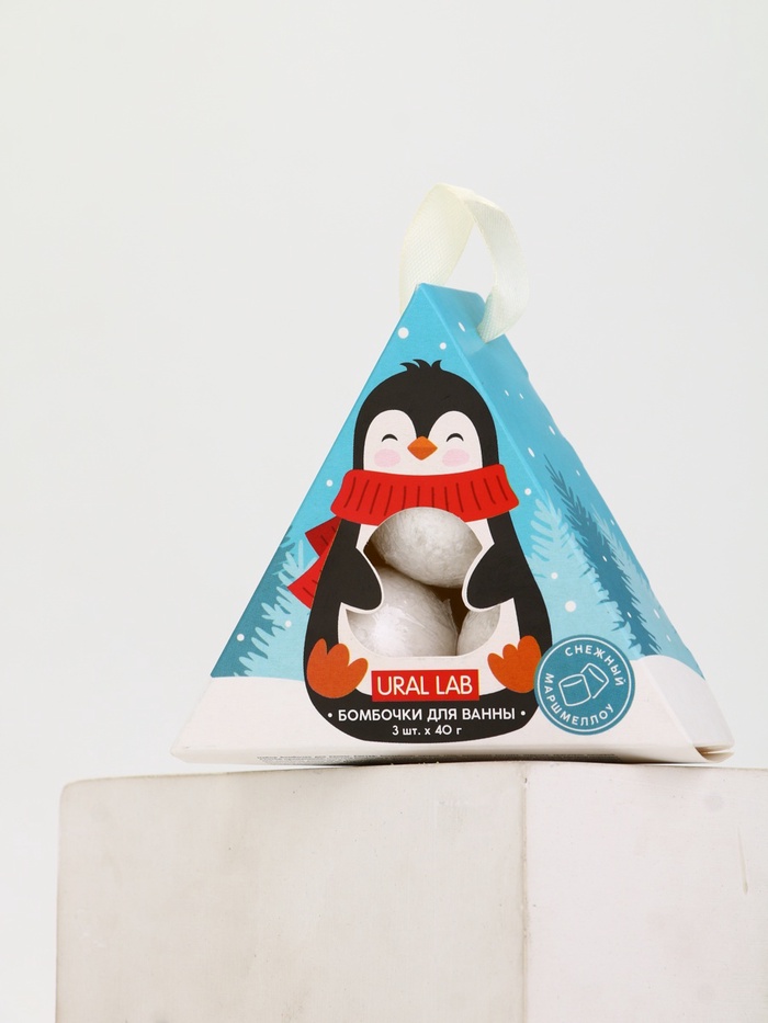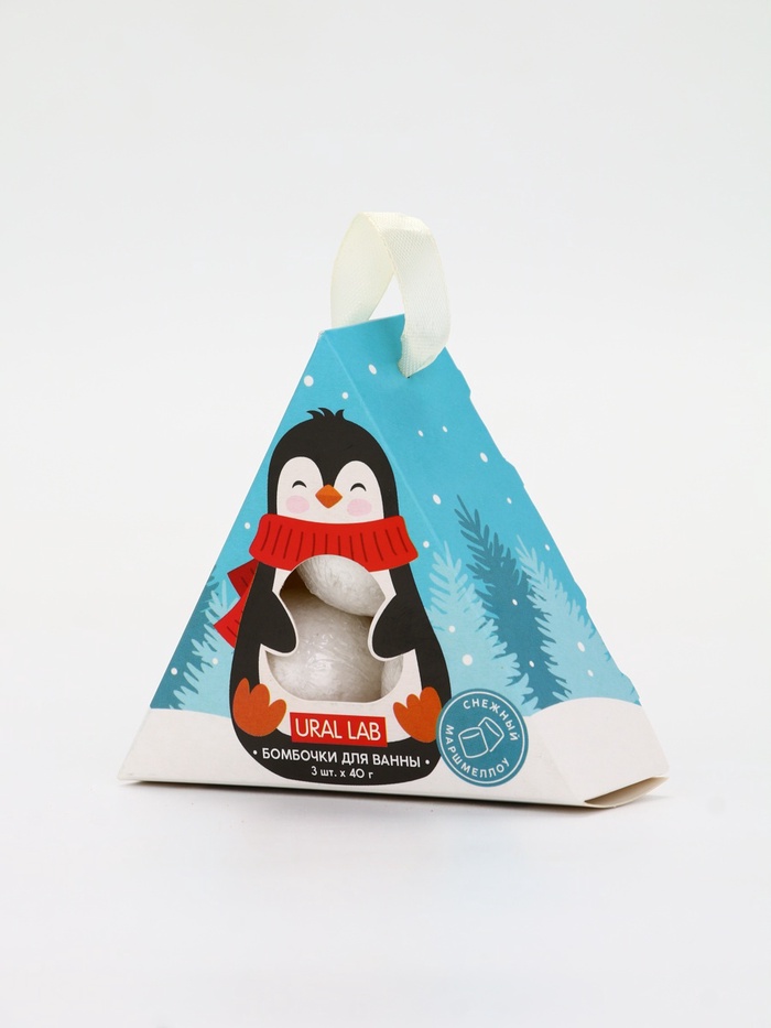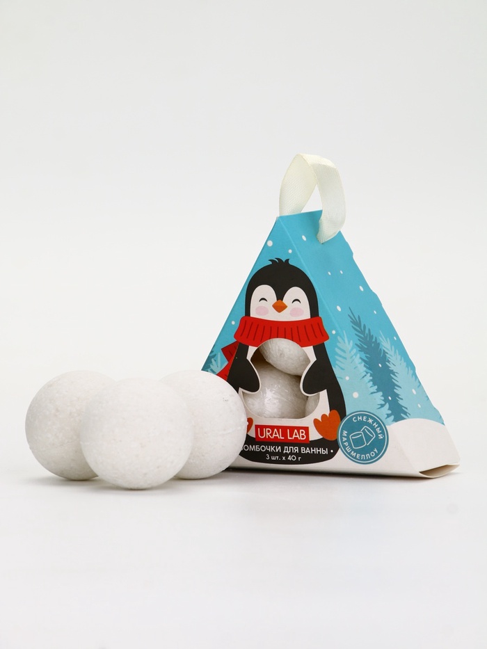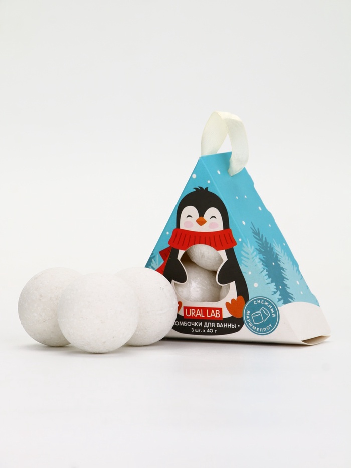 Бомбочки для ванны «Пингвин», 3 шт. × 40 г, снежный маршмеллоу, URAL LAB 8 фото