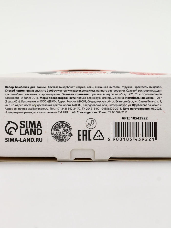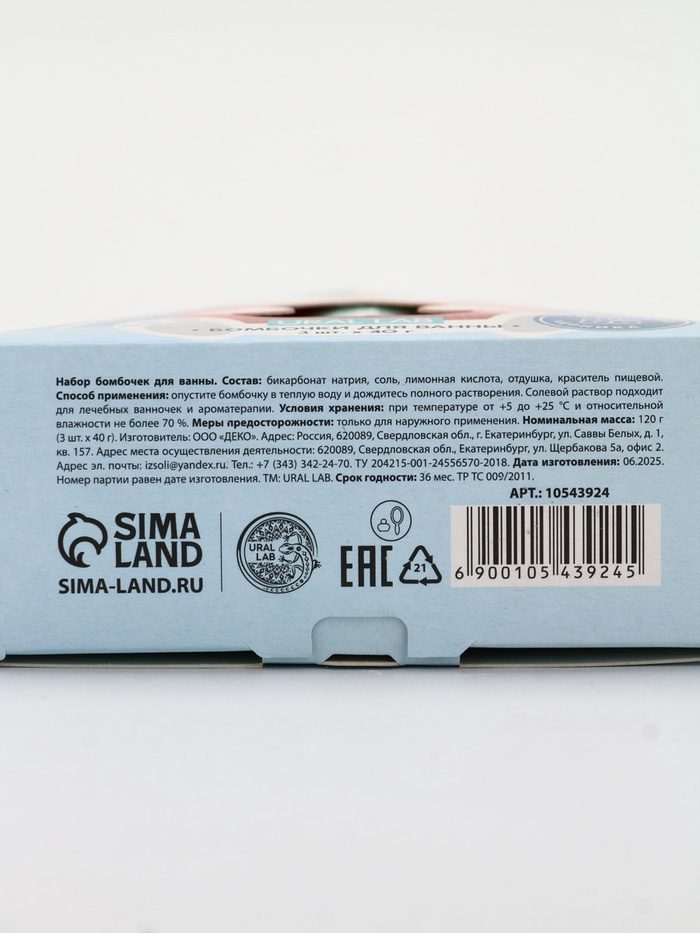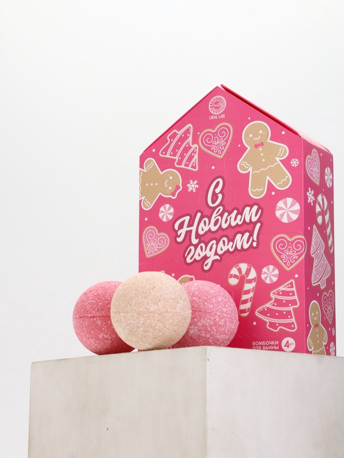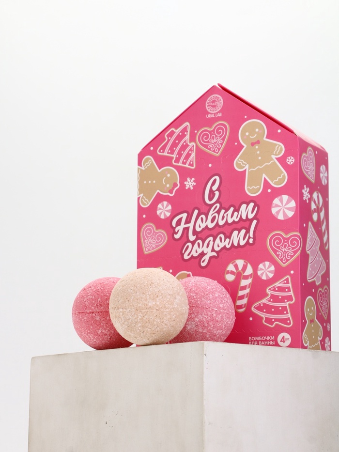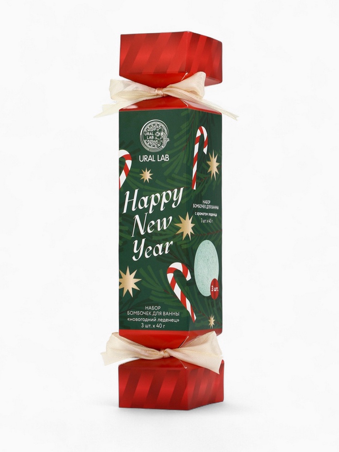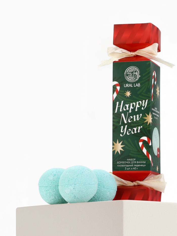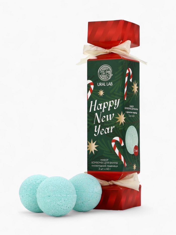 Бомбочки для ванны Happy New Year, набор 3 шт. × 40 г, аромат новогодний леденец, URAL LAB 7 фото