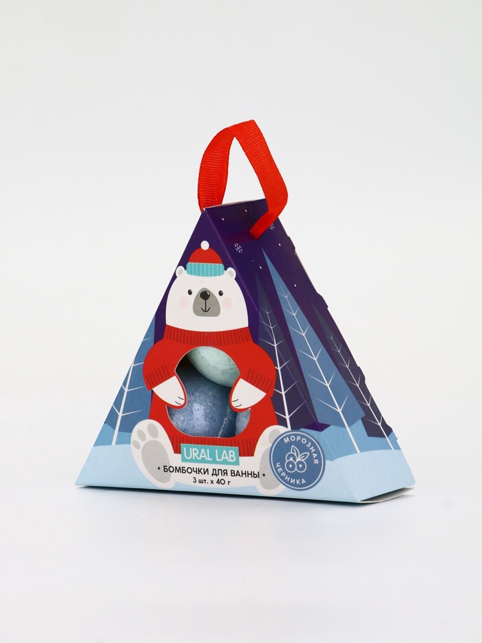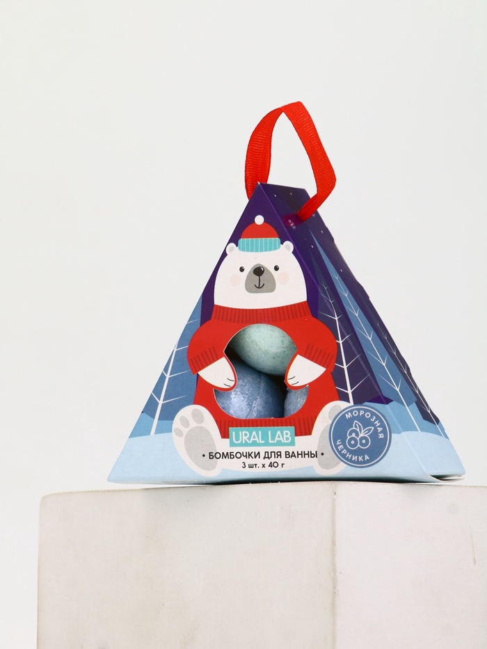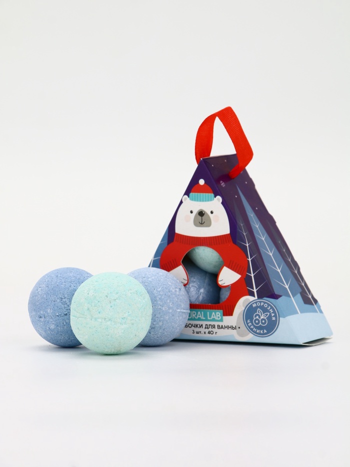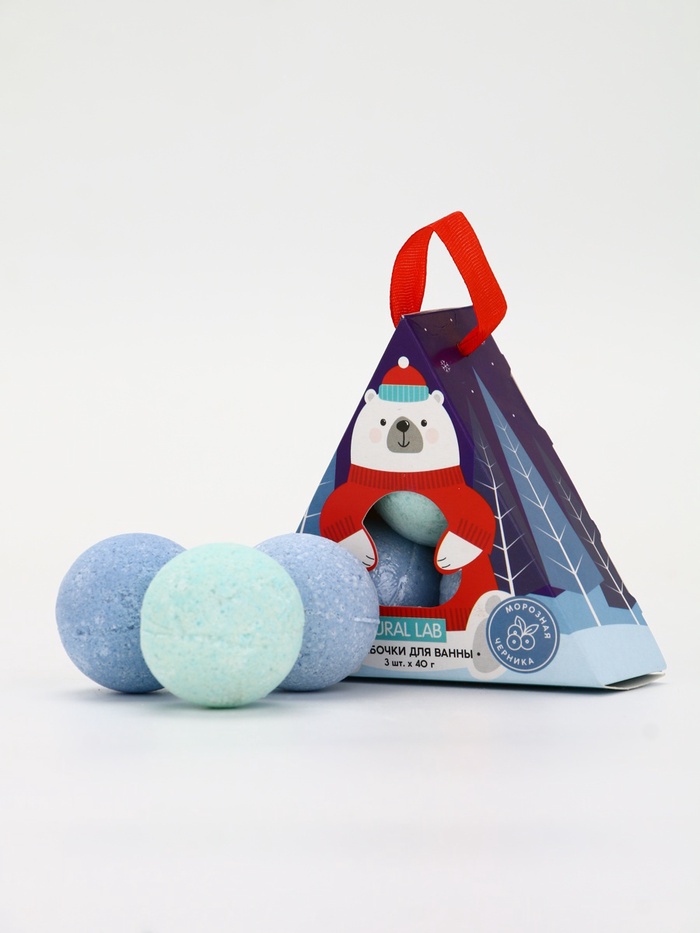 Бомбочки для ванны «Мишка», 3 шт. × 40 г, морозная черника, URAL LAB 8 фото