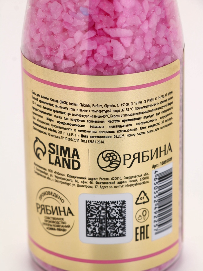 Соль для ванны Champagne Queen, 285 г, аромат фрукты со льдом, Чистое счастье 8 фото