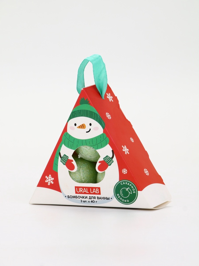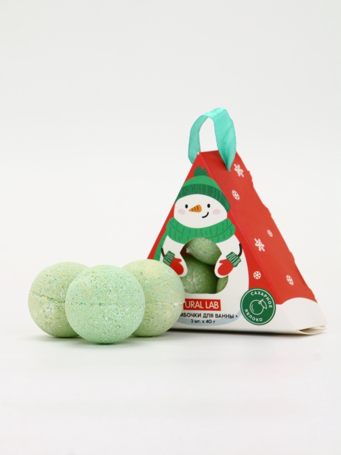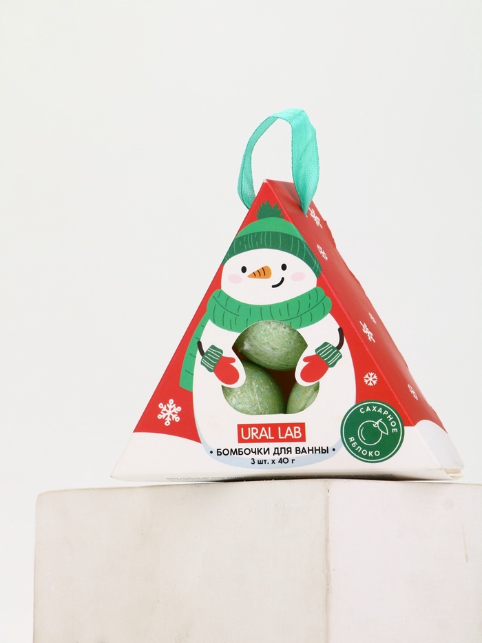 Бомбочки для ванны «Снеговик», 3 шт. × 40 г, сахарное яблоко, URAL LAB 8 фото