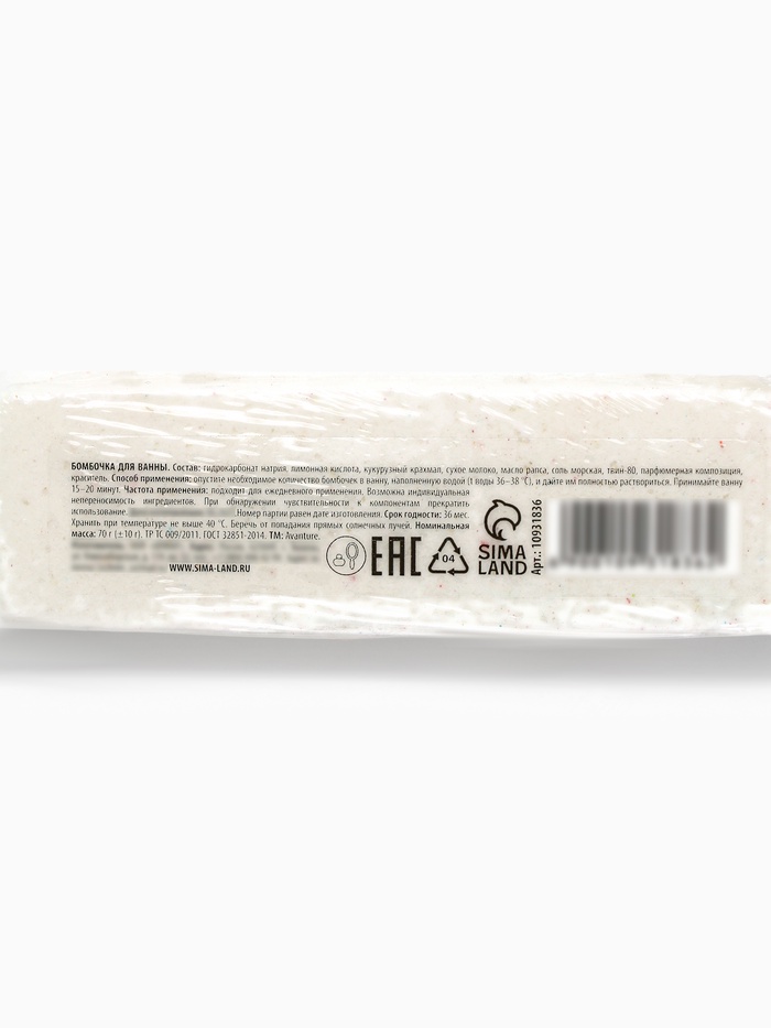 Бомбочка для ванны прямоугольная «Санта», 70 г, URAL LAB 7 фото