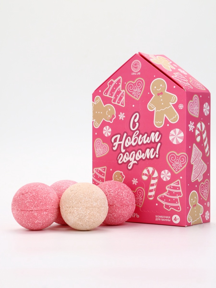 Бомбочки для ванны Happy New Year, аромат праздничный пунш, набор 12 шт. × 20 г, URAL LAB 10 фото