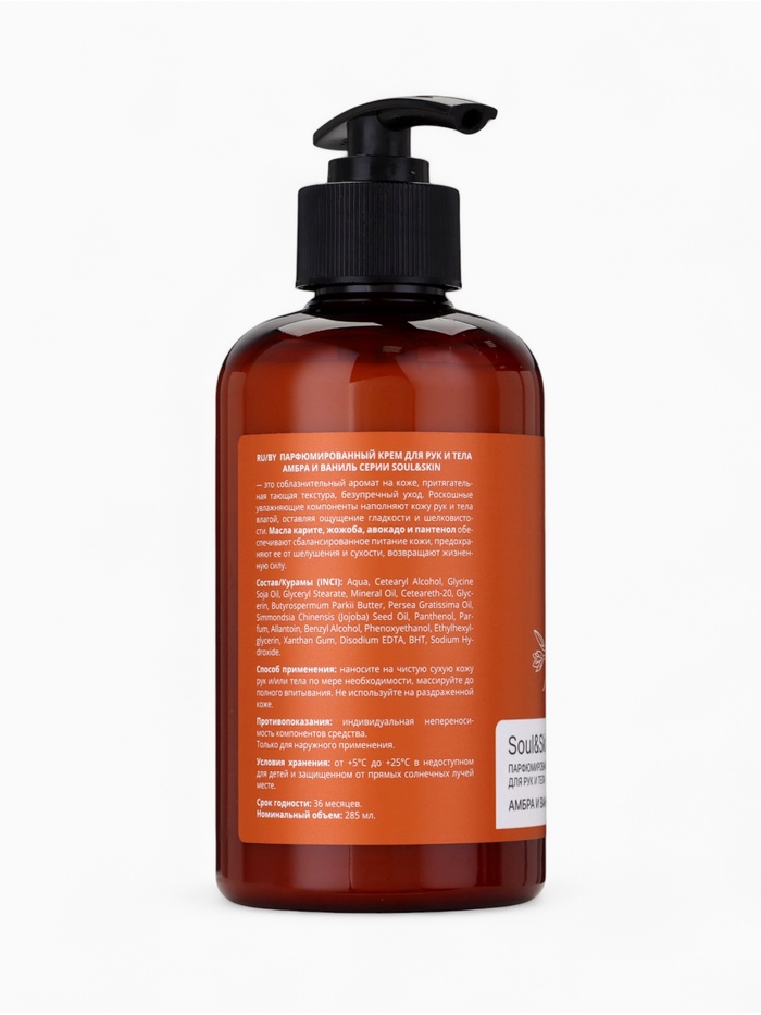 Крем для рук и тела парфюмированный Soul&Skin амбра и ваниль, 285 мл 5 фото