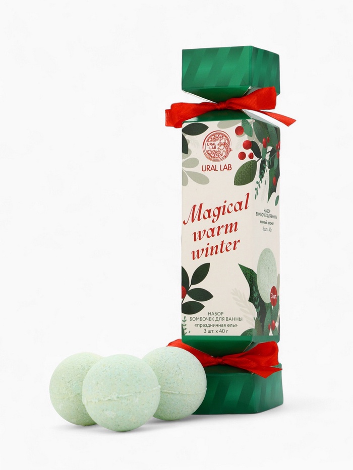 Бомбочки для ванны Magical warm winter, набор 3 шт. × 40 г, праздничная ель, URAL LAB 7 фото