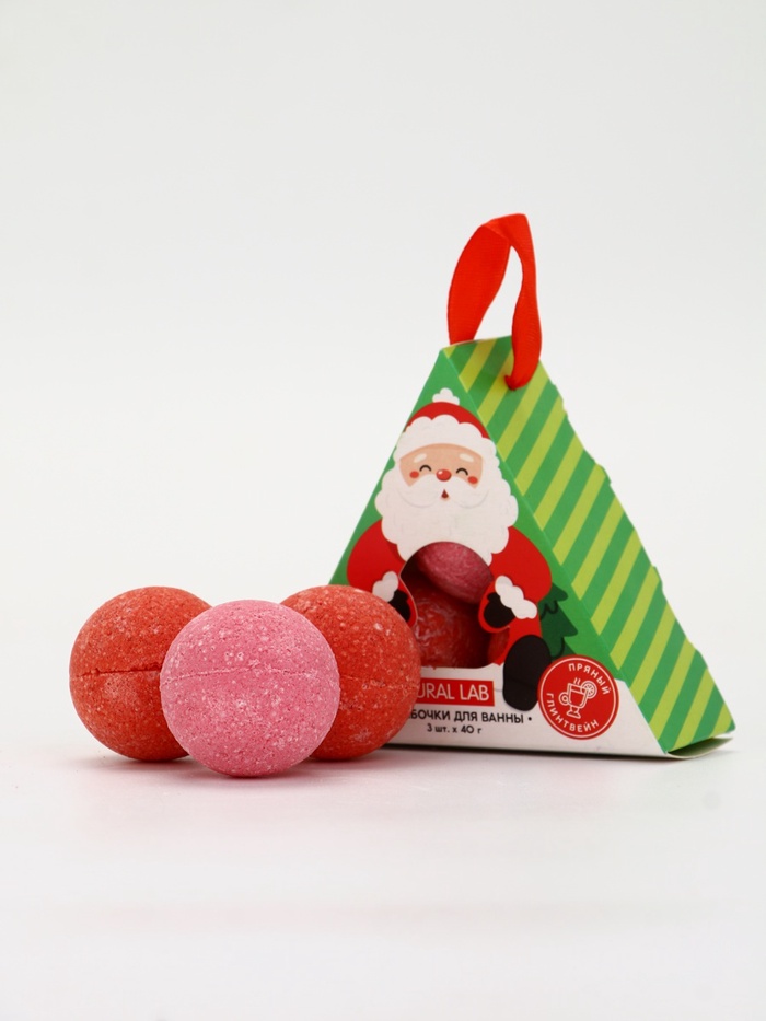 Бомбочки для ванны «Санта», набор 3 шт. × 40 г, пряный глинтвейн, URAL LAB 8 фото