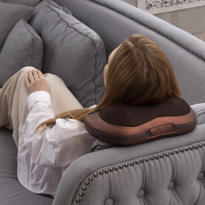 Массажная подушка Centek CT-2199, 3.7 Вт, 7 режимов, 12 головок, ИК-подогрев, бежевая 7 фото