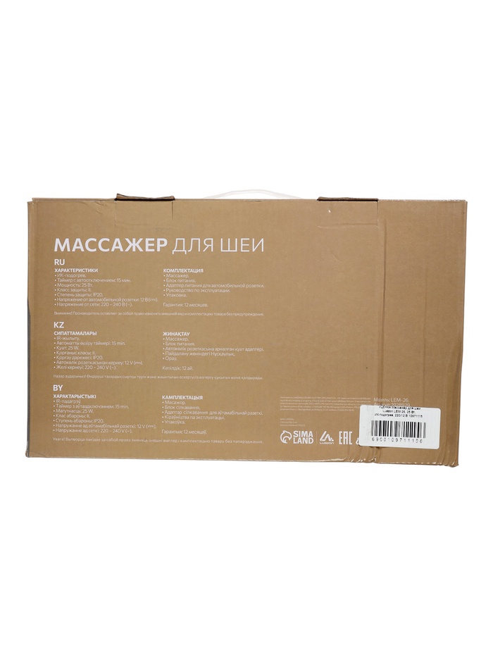 УЦЕНКА Массажёр для шеи Luazon LEM-26, 25 Вт, ИК-подогрев, 220/12 В 10 фото