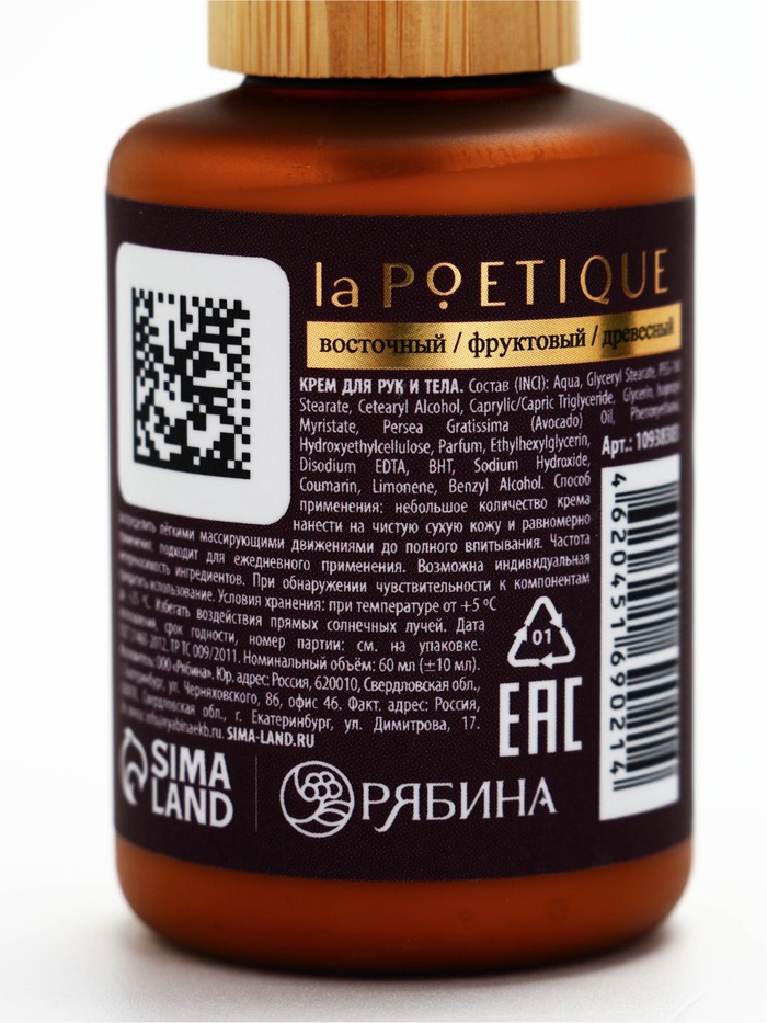 Крем для рук и тела парфюмированный, аромат Arabian night, 60 мл, laPOETIQUE 10 фото