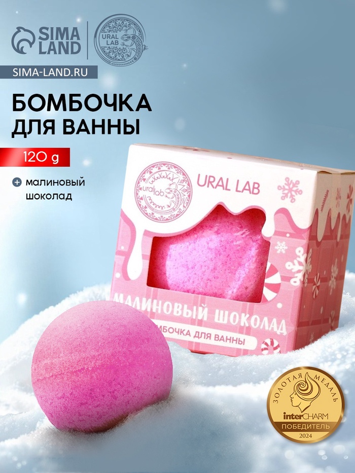 Бомбочка для ванны, 120 г, аромат малинового шоколада, URAL LAB 7 фото