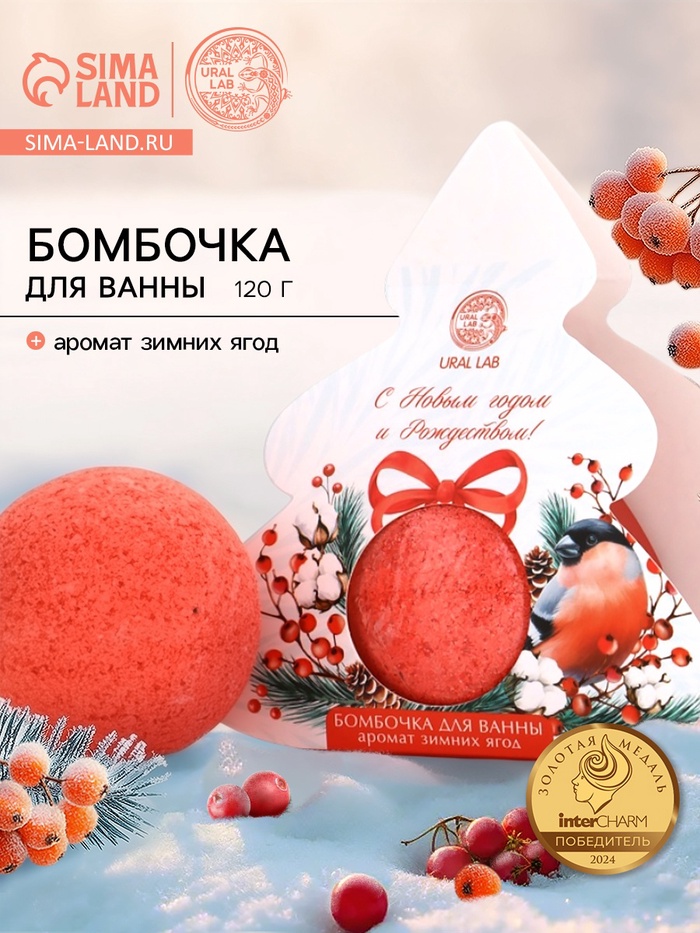 Бомбочка для ванны, аромат зимние ягоды, 120 г, URAL LAB 7 фото