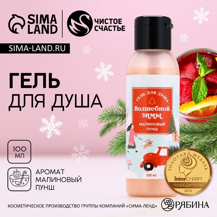 Гель для душа «Волшебной зимы», 100 мл, аромат малиновый пунш, Чистое счастье 6 фото