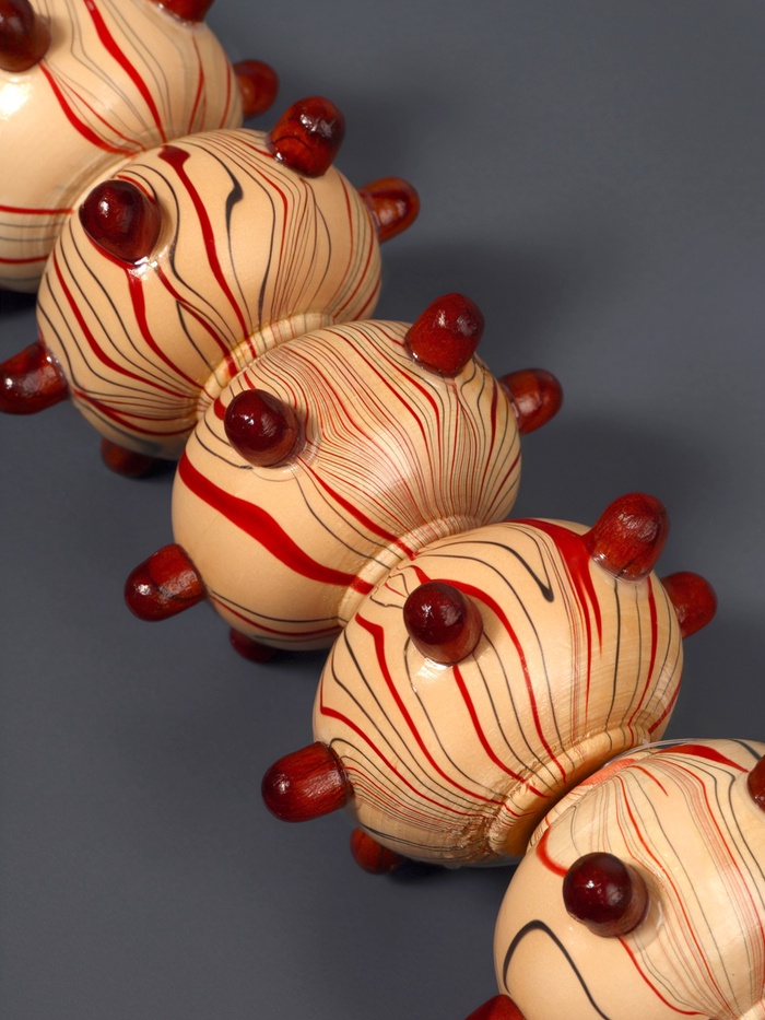 Массажёр с шипами «Гусеница», 15×6.8×6.5 см, универсальный, с ручкой, 8 колёс, деревянный, МИКС