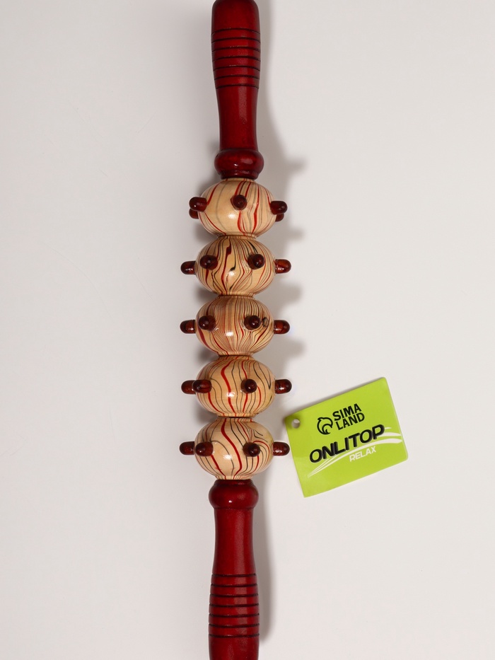 Массажёр «Скалка», универсальный, 38×7 см, 9 колёс, деревянный