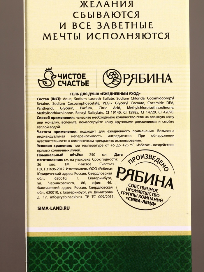 Гель для душа, с витаминами, мочевиной и д-пантенолом, аромат: морозная рябина, 250 мл РЯБИНА 9 фото