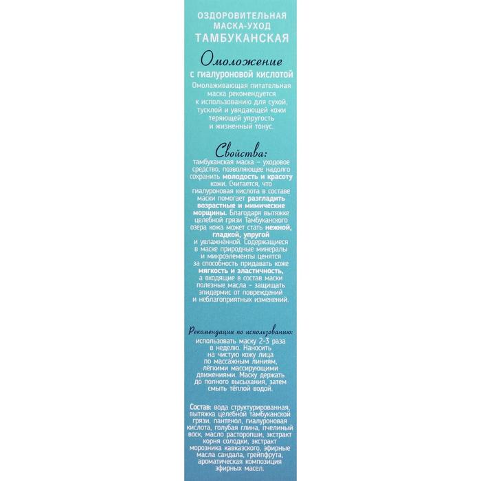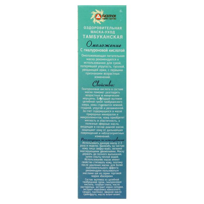 Маска-уход для лица «Омоложение», оздоровительная Тамбуканская, с гиалуроновой кислотой, 20 мл 5 фото