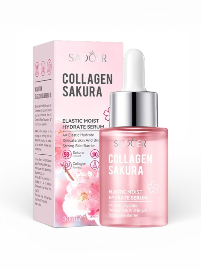 Омолаживающая сыворотка для лица Sadoer с коллагеном, экстракт сакуры, 30 мл