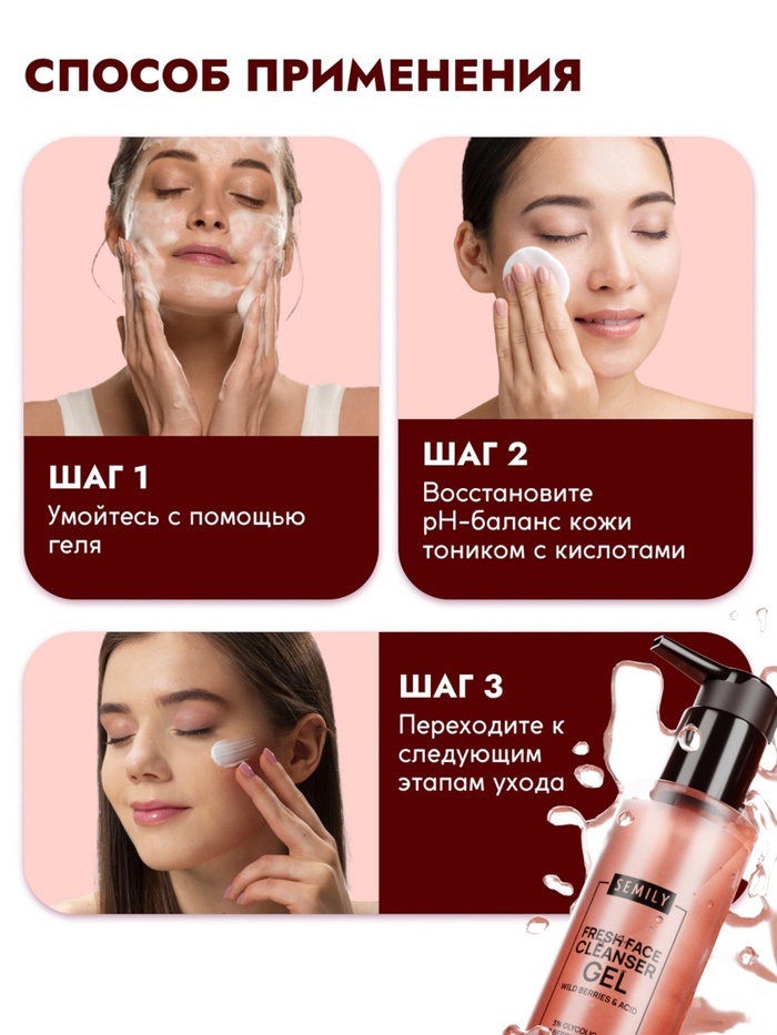 Гель для умывания очищающий SEMILY с АНА кислотами, 200 мл 9 фото