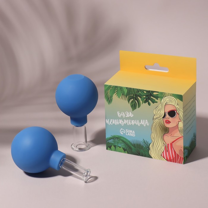 Набор вакуумных банок для массажа, стеклянные, d 1,5/2.4 см, 2 шт., цвет голубой 8 фото