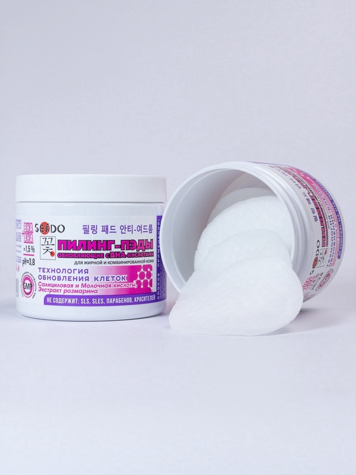 Пилинг-ПЭДЫ для лица Sendo c BHA- кислотами, обновляющие, 80 мл 5 фото