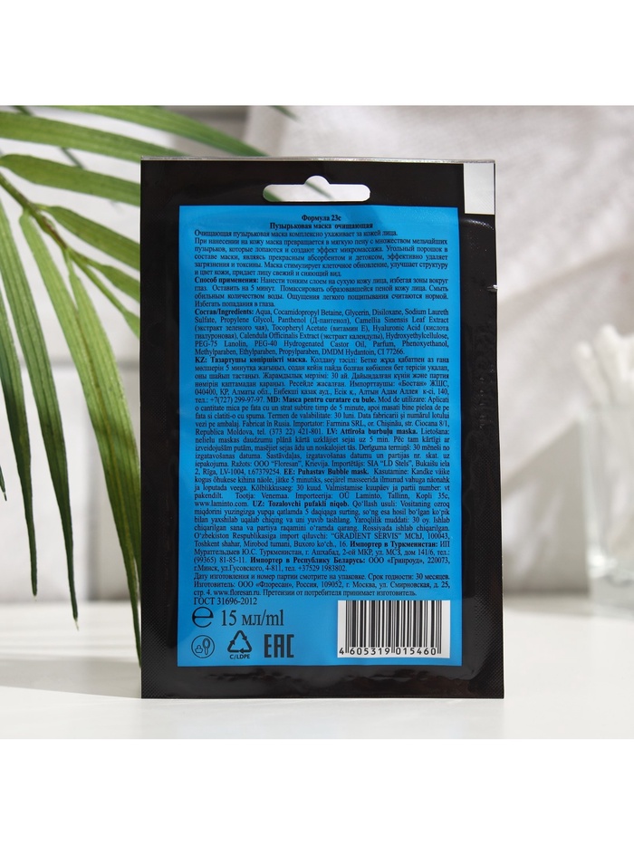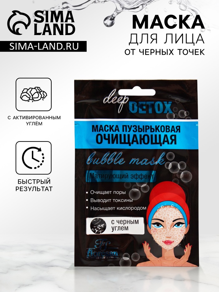 Маска для лица пузырьковая Floresan с черным углем, 15 мл 7 фото