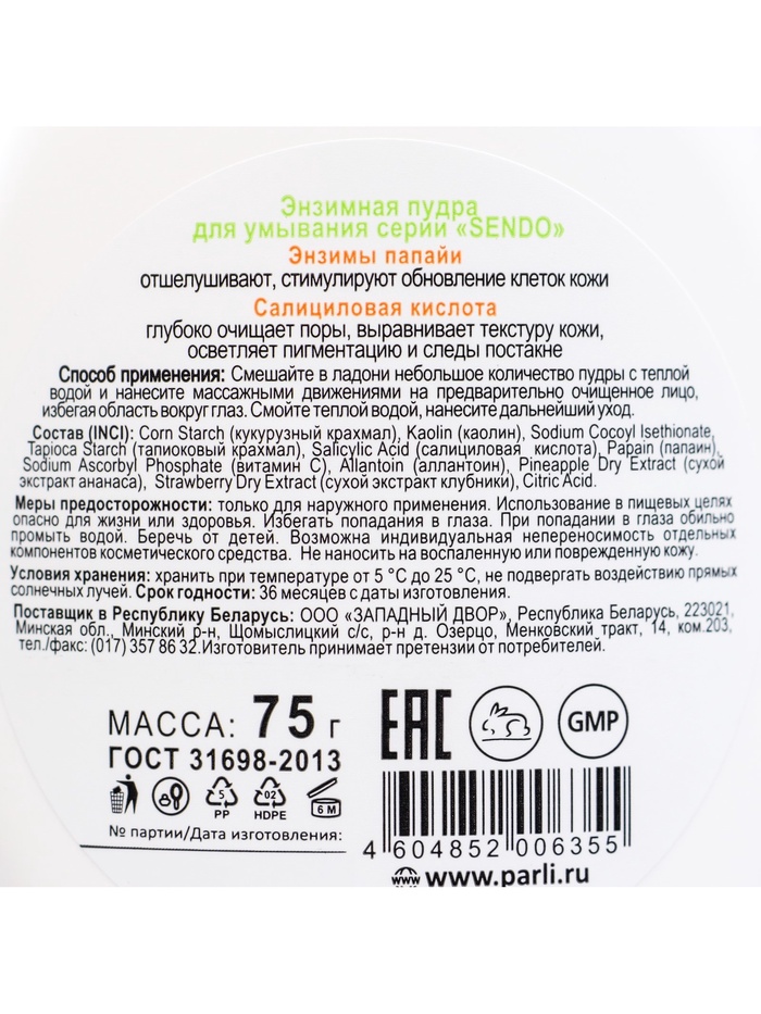 Энзимная пудра для умывания серии Sendo, 75 г 7 фото