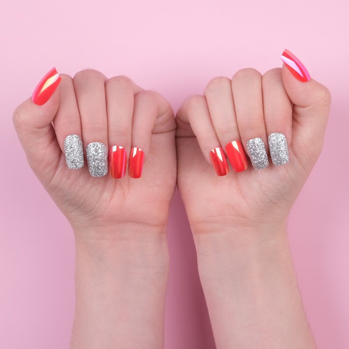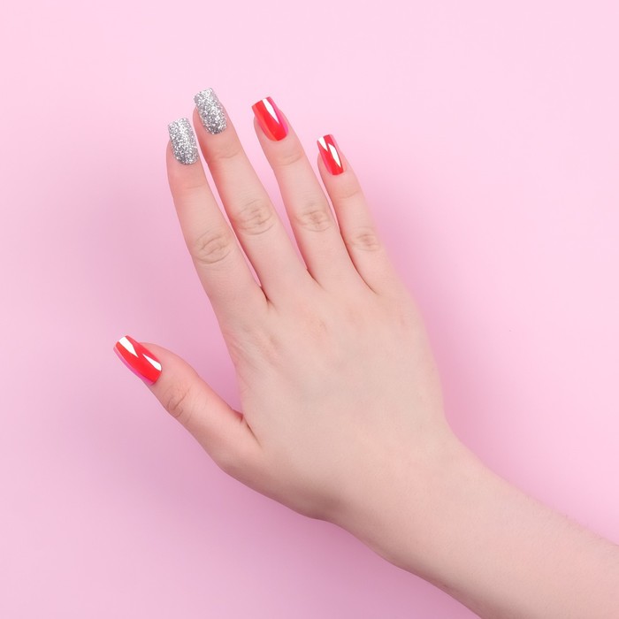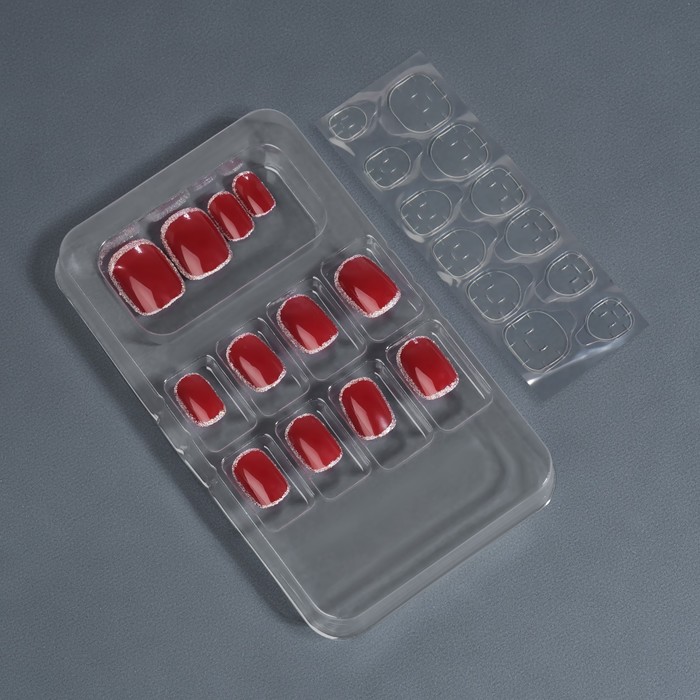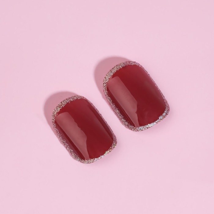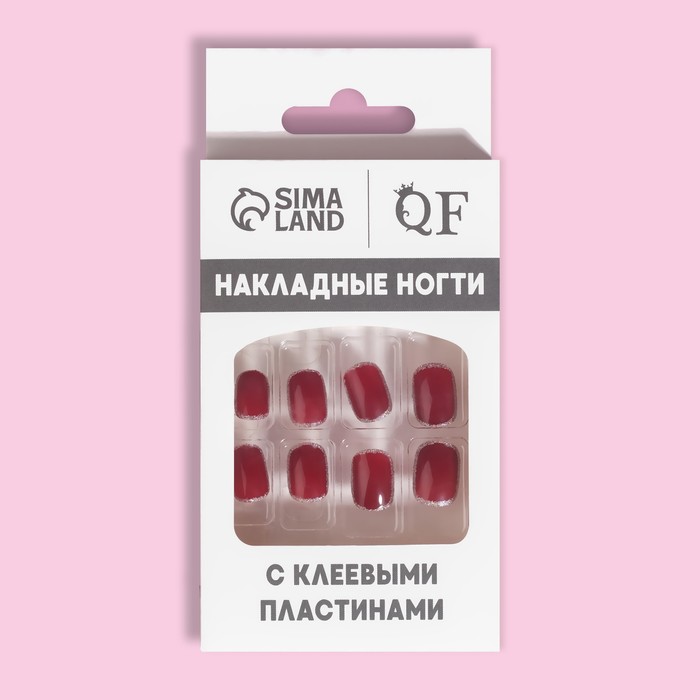 Накладные ногти «Wine», 12 шт., с клеевыми пластинами, форма мягкий квадрат, бордовые, серебристые 7 фото