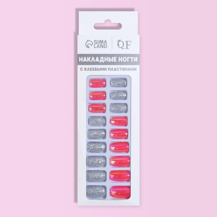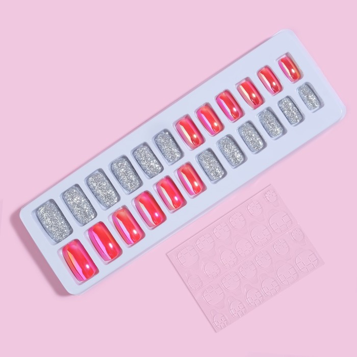 Накладные ногти, 24 шт., с клеевыми пластинами, форма мягкий квадрат, голографические, серебристые 8 фото