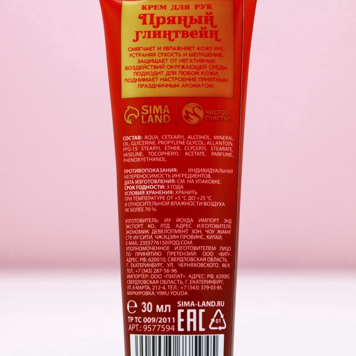 Крем для рук новогодний, 30 мл, аромат пряного глинтвейна, Чистое счастье 9 фото