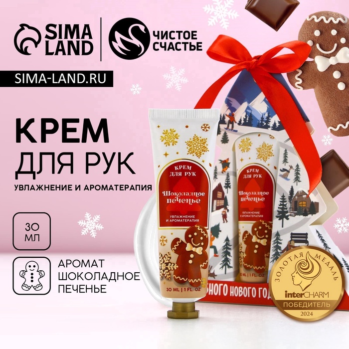 Крем для рук новогодний, 30 мл, аромат шоколадного печенья, Чистое счастье 9 фото
