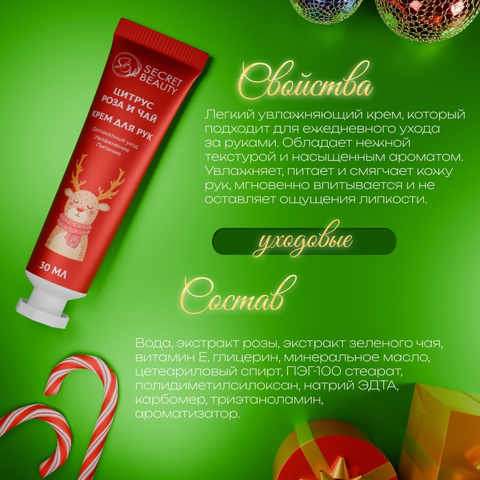 Крем для рук новогодний «Цитрус, роза и чай», 30 мл 3 фото