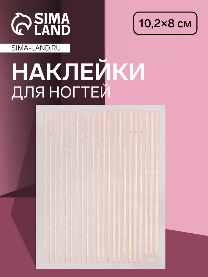 Наклейки для ногтей «Полоски», металлизированные, цвет розовое золото 5 фото