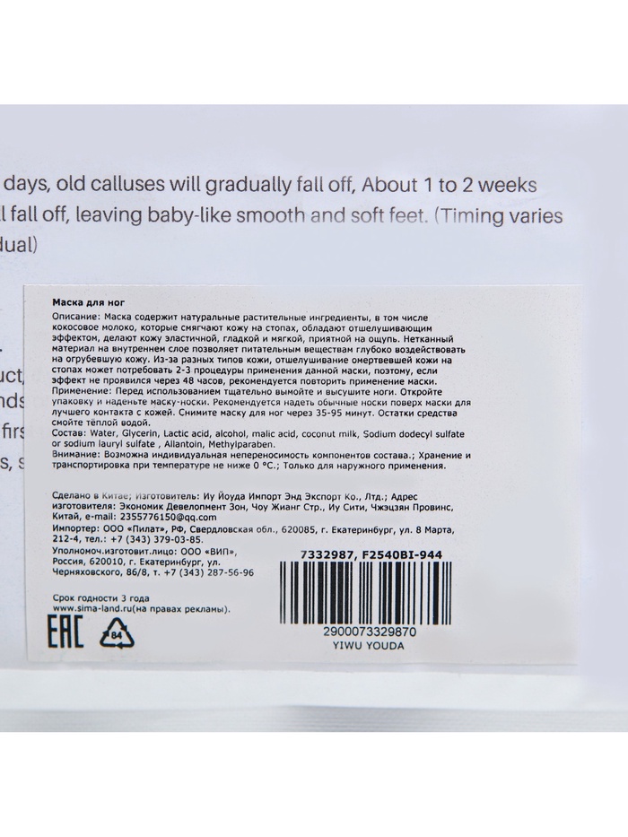 Отшелушивающая маска-носки для ног на основе кокосового молока, 1 пара 8 фото