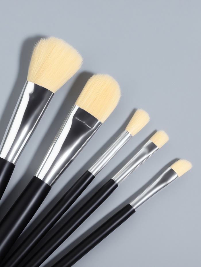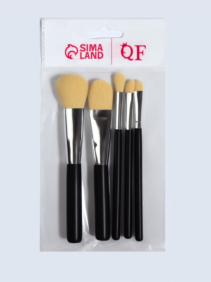 Набор кистей для макияжа SMOKY, нейлоновых, 5 шт., чёрный с белым ворсом 6 фото