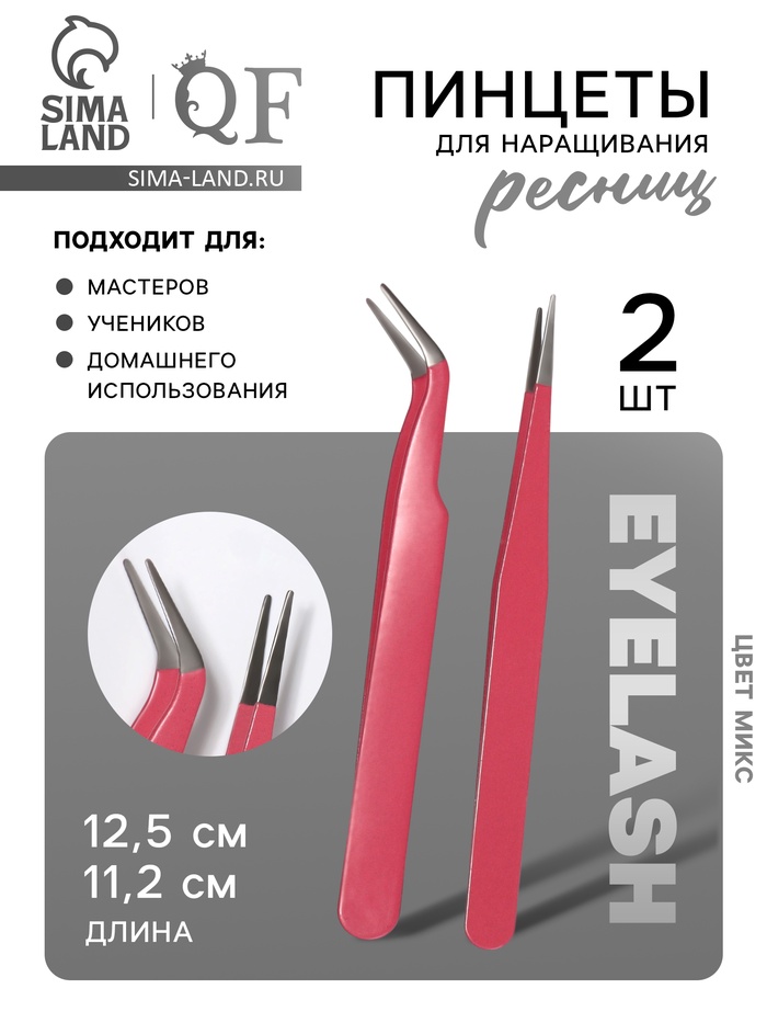 Пинцеты для наращивания ресниц, набор - 2 шт., МИКС 8 фото