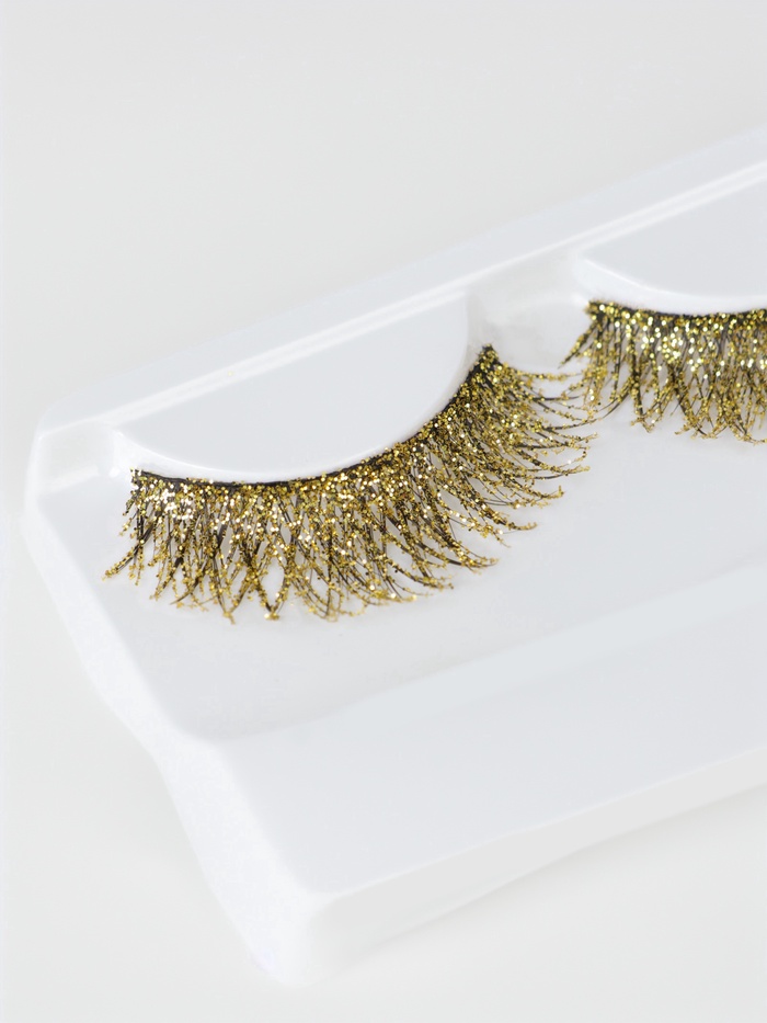 Ресницы накладные «Сияй», с блёстками, 14 мм, без клея, золотистые 4 фото
