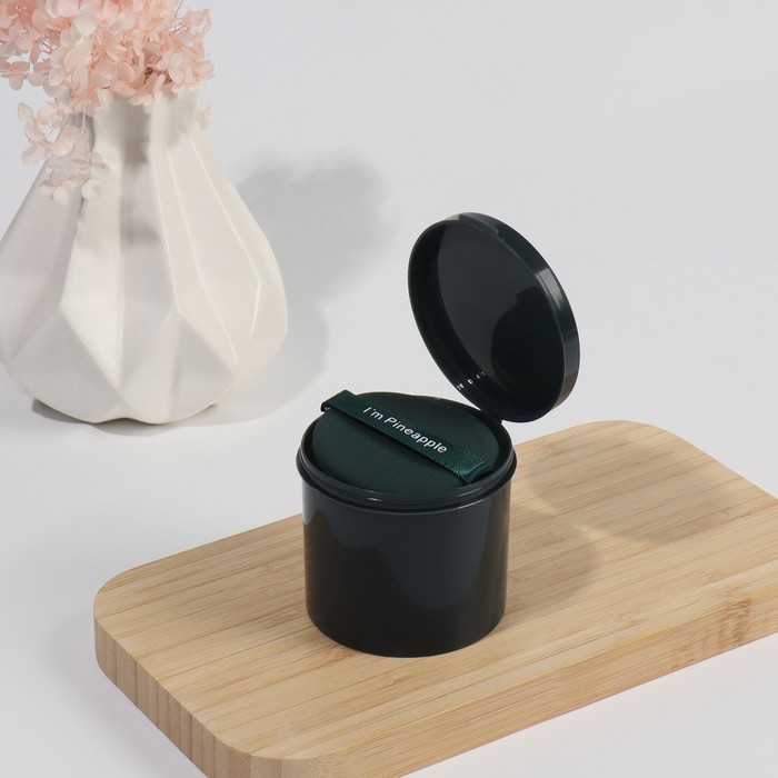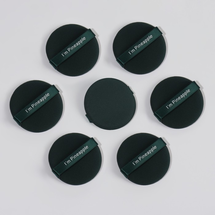 Спонжи для макияжа PINNEAPPLE, набор - 7 шт., d=5.5 см, с держателем, в футляре, цвет изумрудный 10 фото