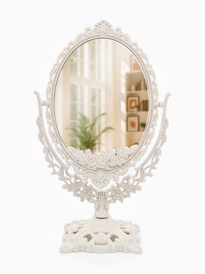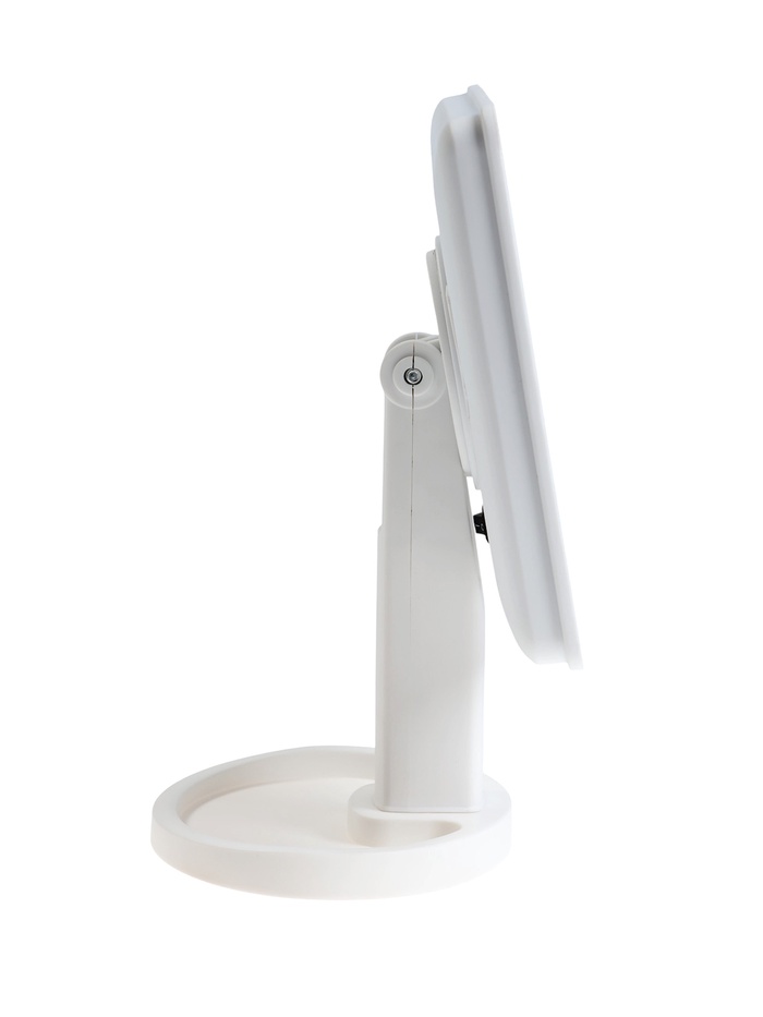 Зеркало с подставкой, с увеличением х2, двустороннее, 20×25×15.5 см, (d=14.5 см), белое 6 фото