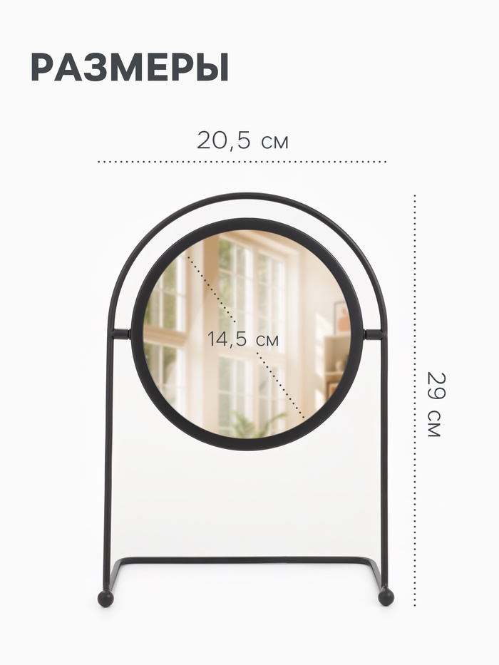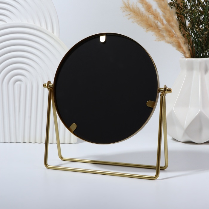 Зеркало настольное, двустороннее, с увеличением, металлическое, 19×19.5 см, (d=16 см), чёрное 3 фото
